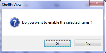 Per ciascun elemento via a via riattivato dall’interfaccia di ShellExView, sarà necessario digitare nuovamente i comandi seguenti al prompt: