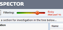 Interessante è la barra Filtering, posta nella parte superiore della finestra. Trascinando l’indicatore verso i valori di destra, si può fare in modo che SysInspector si limiti a visualizzare solo gli elementi sconosciuti o quelli pericolosi (in rosso):