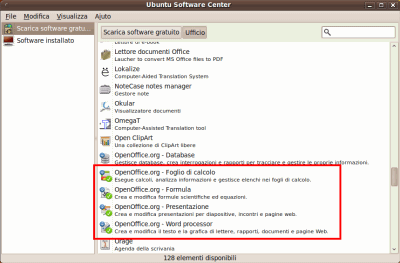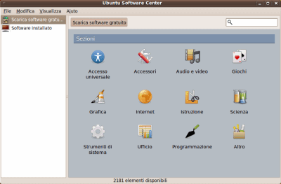 Nella finestra principale, viene proposta una lista delle categorie di software disponibili (Accesso universale, Accessori, Audio e video, Giochi, Grafica, Internet, Istruzione, Scienza, Strumenti di sistema, Ufficio, Programmazione ed Altro): cliccando su una qualunque delle icone visualizzate, Ubuntu presenta l’elenco delle applicazioni scaricabili. Com’è possibile verificare, si tratta di programmi opensource oppure completamente gratuiti che possono essere quindi liberamente installati sul proprio sistema Linux.