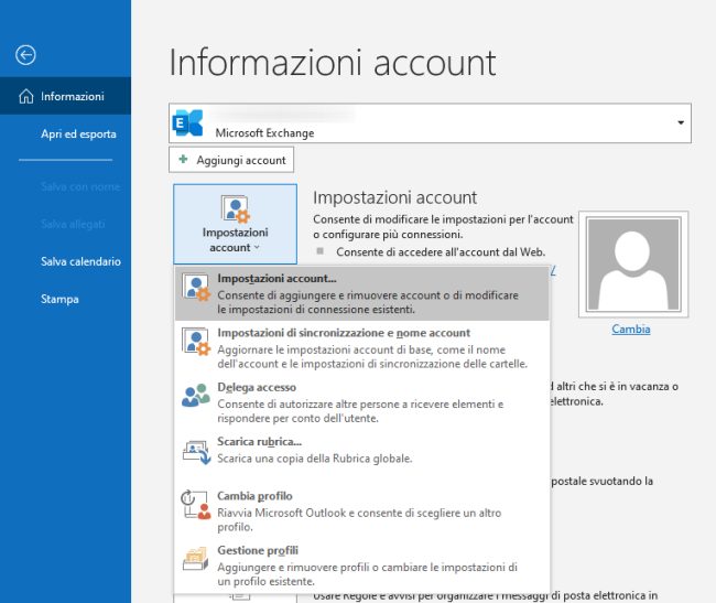 Per procedere alla sincronizzazione del calendario Google con Outlook basta fare clic sul menu File, sul pulsante Impostazioni account quindi di nuovo sulla stessa voce all’interno del programma Microsoft.