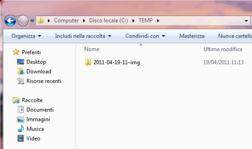Sul sistema di destinazione sarà immediatamente creata, nella directory condivisa, una sottocartella col nome del file d’immagine in corso di generazione: