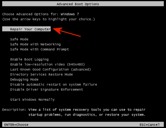 Prima di scaricare ed eseguire Combofix su un sistema Windows Vista e Windows 7 è invece bene accertarsi di essere in grado di accedere allo strumento che permette il ripristino del sistema in caso di problemi. Dopo aver riavviato il personal computer, durante la fase di boot, prima della comparsa della schermata “Avvio di Windows“, si dovrà ripetutamente premere il tasto F8. Apparirà un menù simile al seguente: