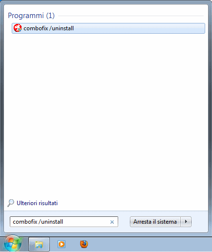 Sia in Windows XP che in Windows Vista e Windows 7 per disinstallare Combofix si dovrà fare clic sul pulsante Start quindi avviare il comando seguente (da digitare nella finestra Esegui su XP e nella casella Cerca programmi e file su Vista e Windows 7):