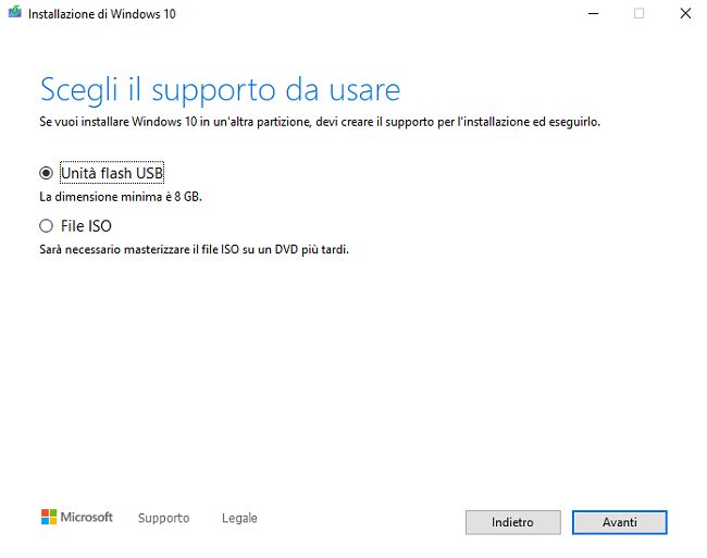 Creare un supporto di avvio per installare Windows 10 da USB compatibile con BIOS legacy e UEFI