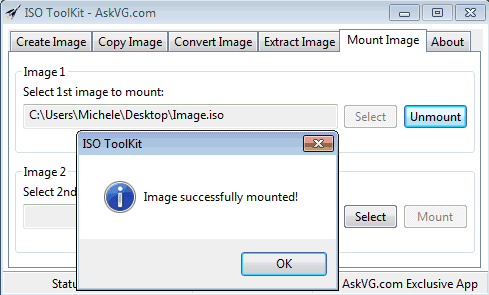 Ciascuna delle funzionalità offerte da ISO Toolkit è fruibile utilizzando le schede Create image, Copy image, Convert image, Extract image e Mount image proposte nell’unica schermata dell’applicazione.