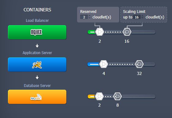 Grazie all’utilizzo della containerizzazione, Jelastic Cloud poggia il suo funzionamento sull’utilizzo di “micro-istanze” chiamate cloudlet: ciascuna di esse lavora sfruttando 128 MB di RAM e 400 MHz di vCPU (virtual CPU).