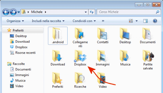 Nell’esempio, la cartella di Dropbox – che viene utilizzata per caricare i dati online e per sincronizzarli con il sistema in uso – è stata creata tra le directory di sistema di Windows, all’interno del profilo dell’utente correttamente in uso.