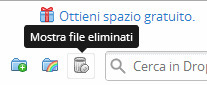 Quando si salva un file nella cartella di Dropbox questo sarà immediatamente inviato “sulla nuvola”; quando lo si cancella, esso sarà rimosso anche dall’account personale. L’eliminazione non sarà definitiva dal momento che, accedendo via browser quindi cliccando sull’icona Mostra file eliminati, questi torneranno ad apparire in elenco (saranno colorati di grigio).