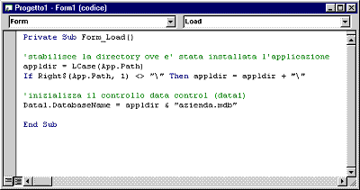Le tre righe di codice aggiunte faranno sì che l’applicazione possa funzionare senza problemi su tutti i personal computer, qualunque sia il nome attribuito alla cartella contenente applicazione e database azienda.mdb.