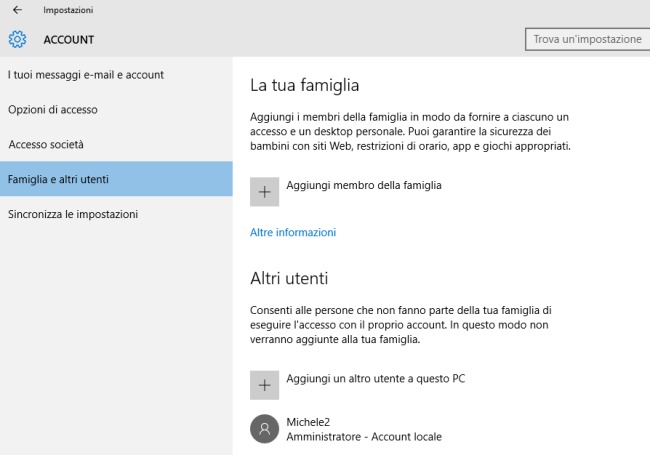 Limitare gli account Windows 10 e impostare tempi di utilizzo