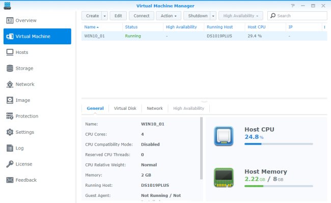 Tra i servizi che i nuovi NAS Synology destinati al mercato professionale offrono c’è anche Virtual Machine Manager (VMM), un hypervisor efficace, efficiente e intuitivo che permette di configurare ed eseguire varie macchine virtuali (tra cui Windows, Linux e Virtual DSM).