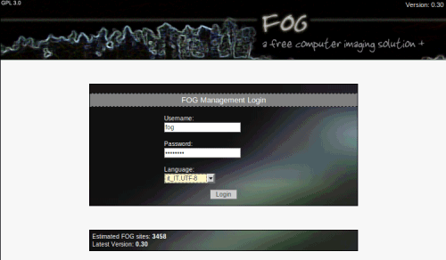 A questo punto si potrà effettuare il login al pannello di amministrazione di FOG utilizzando le credenziali d’accesso predefinite (fog come nome utente e password come password).