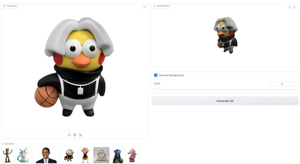 Per comprendere meglio il funzionamento di Unique3D, è sufficiente visitare la home page del progetto su Hugging Face quindi selezionare una delle immagini di esempio proposte al di sotto del riquadro Frontview. In alternativa, cliccando sul piccolo pulsante Upload è possibile caricare una propria immagine.