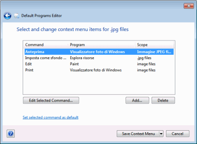 Senza dover ricorrere alla modifica manuale del contenuto del registro di sistema, DefaultPrograms offre gli strumenti per rinominare, aggiungere ed editare le varie voci presenti nel menù contestuale.