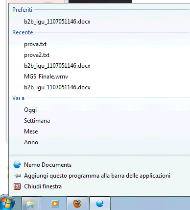 Ottima l’integrazione con la shell di Windows: sia nel menù Programmi che facendo clic con il tasto destro del mouse sull’icona del software mostrata nella barra delle applicazioni, Nemo Documents mostra la lista dei documenti preferiti, gli elementi recenti e permette di passare rapidamente alle viste giornaliere, settimanali, mensili od annuali: