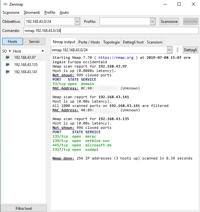 Come indicato con la subnet mask utilizzata, la scansione avverrà tra l’IP 192.168.1.1 e l’IP 192.168.1.254: Subnet mask, cos’è e a che cosa serve.