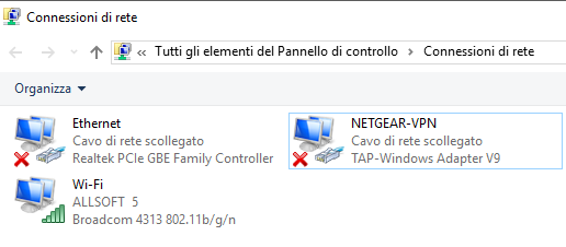 Cliccando con il tasto destro su tale interfaccia bisognerà rinominarla, nel caso dei router Netgear, come NETGEAR-VPN.