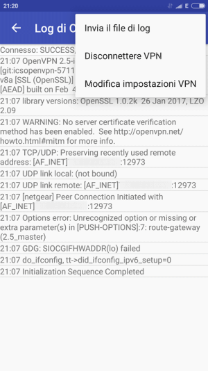 La configurazione per il client OpenVPN sarà così importata nell’applicazione OpenVPN per Android, installata in precedenza.