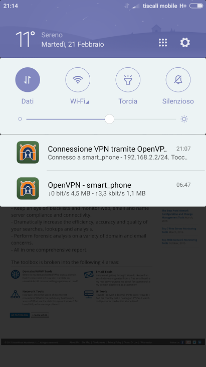 L’attivazione della connessione OpenVPN sarà manifesta anche nell’area delle notifiche di Android: