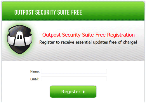La versione “free” di Outpost Security Suite 7 può essere utilizzata liberamente, per un periodo di tempo pari ad un anno, a patto di effettuare una registrazione gratuita al termine dell’installazione. Per procedere, è necessario visitare questa pagina, introdurre nome e cognome ed un indirizzo e-mail valido negli appositi campi quindi cliccare su Register.