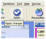Tutte le operazioni compiute sulle partizioni del disco fisso durante l’impiego di EASEUS Partition Manager sono “virtuali” fintanto che la loro effettuazione non viene confermata cliccando il pulsante Apply (“Applica”) visualizzato nella barra degli strumenti.
