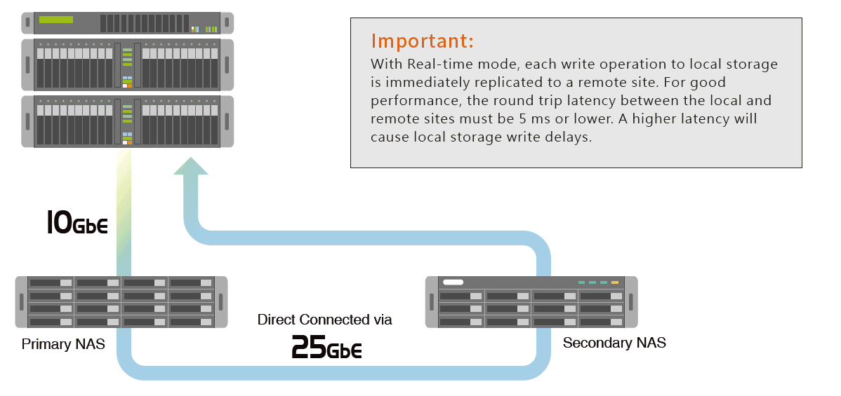 Attivando il trasferimento di dati in tempo reale con SnapSync, si ha la certezza che tutti i file siano completamente scritti sia sul NAS primario che su quello secondario prima di rispondere alle richieste di accesso. Così facendo si ottengono massime garanzie in termini di coerenza dei dati ed è possibile modificare in qualunque momento la destinazione utilizzata per sincronizzare i dati qualora si dovessero riscontrare problemi su uno dei due NAS.