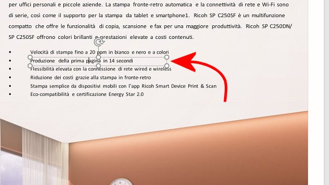 Come accennato nell’introduzione il motore usato dal programma Microsoft per convertire PDF in Word fa ampio uso di cornici. Nell’immagine si vede come per ogni riga di testo sia stata usata una cornice a sé stante.