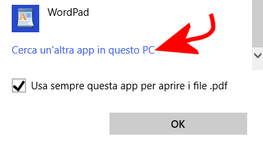 Se l’applicazione d’interesse non comparisse neppure in questo elenco, si dovrà scorrere la lista fino in fondo e fare clic su Altre app spuntando anche la casella Usa sempre questa app per aprire i file.