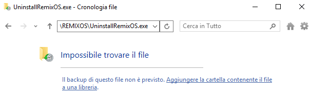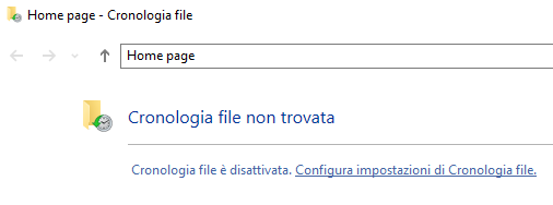 Nel caso in cui la cartella fosse oggetto di backup automatico, Cronologia file mostrerà tutte le copie conservate. Viceversa, esporrà il messaggio Impossibile trovare il file. Il backup di questo file non è previsto.