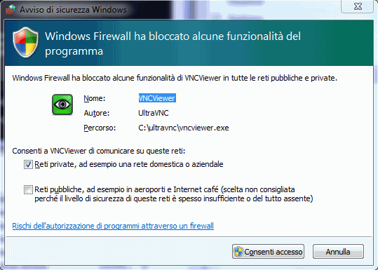 Nel caso di Windows Vista e di Windows 7, il modulo firewall segnalerà tale comportamento mostrando la finestra che segue: