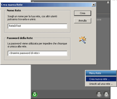 Cliccando sul secondo pulsante (Rete) si può adesso creare la propria rete VPN od accedere ad una già esistente.