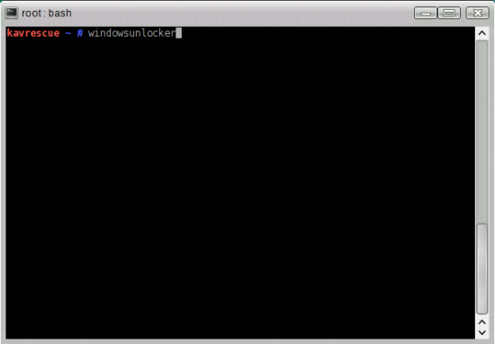 A questo punto, suggeriamo di avviare lo strumento aggiuntivo Kaspersky Windows Unlocker eseguibile cliccando sul pulsante in basso a sinistra, scegliendo Terminal quindi digitando windowsunlocker: