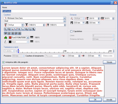Ricorrendo al comando Stili paragrafo (menù Modifica), l’utente può intervenire sui diversi stili impostati per la formattazione delle varie aree del documento. Un clic sul pulsante Modifica consente di agire su carattere, allineamento, tabulazioni e rientri, capolettera, distanze e così via.