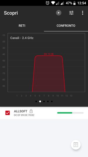 L’app Android, però, si riduce a un più semplice scanner di reti WiFi: in una schermata vengono mostrate le reti rilevate in zona, nell’altra l’andamento del segnale WiFi nel corso del tempo e l’occupazione dei vari canali sulle bande dei 2,4 e dei 5 GHz.