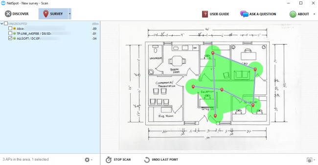 È però nella sezione Survey che NetSpot dà il meglio di sé: qui, infatti, gli utenti possono caricare la planimetria dell’edificio da coprire con il segnale WiFi.