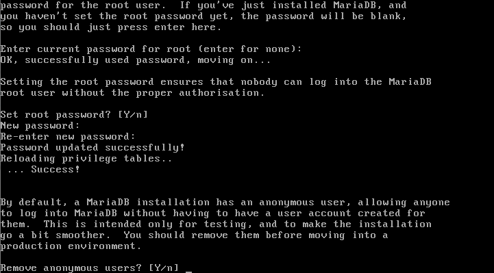 Dopo aver premuto il tasto Invio o digitato Y (Yes), si dovrà scegliere una password per l’account root del DBMS MariaDB.