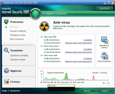 Le abilità dell’antivirus sono ormai proverbiali. A parte qualche falso positivo, evidenziato anche nei test di AV-Comparatives e VBA 100%, KIS 2009 si è ben comportato, proteggendo il sistema da qualsiasi tentativo di intrusione. Abbiamo incontrato qualche difficoltà, invece, anche rispetto alle precedenti versioni della suite, nell’eliminazione di malware già presenti su una macchina ampiamente infetta.
