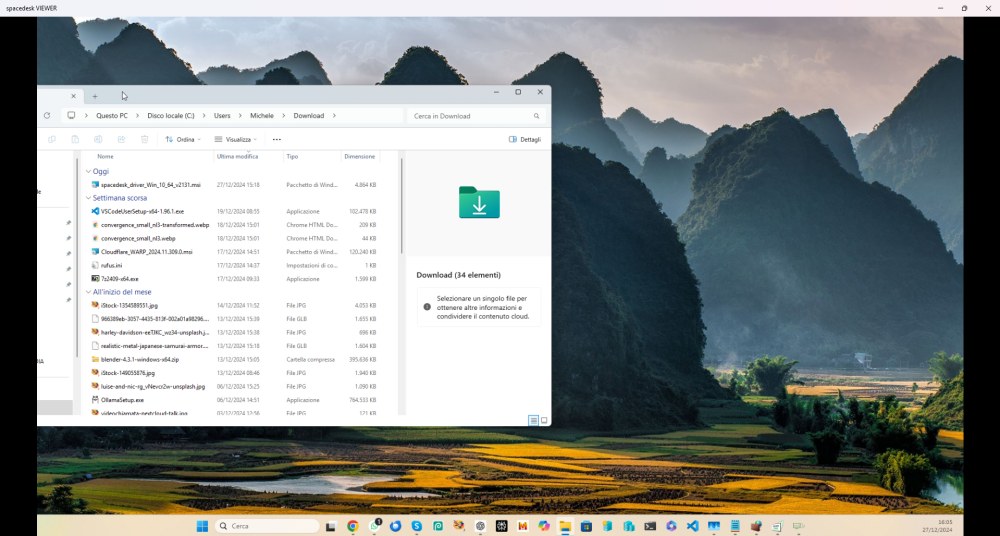 Cliccando sull’indirizzo IP (Connection), il modulo Viewer stabilisce una connessione con il server e, per impostazione predefinita, duplica lo schermo di quest’ultimo. Cliccando su Fullscreen oppure premendo ALT+INVIO, la finestra di Spacedesk è posta a schermo intero. La stessa cosa può essere fatta sui dispositivi Android, iOS e Amazon.