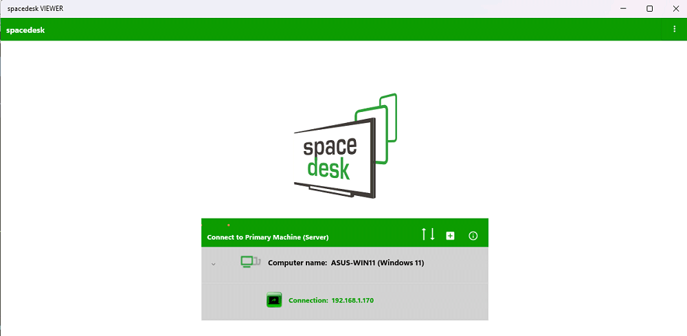 Quando il server (modulo driver) di Spacedesk è attivo, avviando il Viewer su uno o più dispositivi connessi in rete locale, questi rilevano automaticamente l’indirizzo IP privato del server.