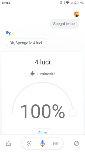 Una volta effettuato il login, si potranno controllare le luci con i comandi vocali usando istruzioni come “OK Google, accendi/spegni le luci“, “Aumenta luminosità“, “Riduci al 10% la luminosità” e così via.