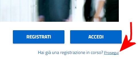 5) Se la procedura di richiesta dell’identità digitale SPID dovesse evidenziare qualche problema, basterà portarsi in questa pagina, cliccare sul link Prosegui in basso a destra quindi digitare codice di registrazione e codice fiscale.
