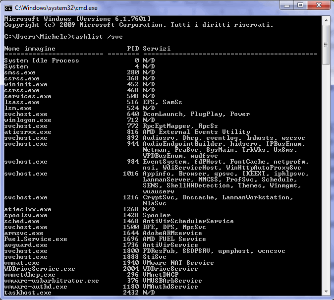 Per verificarlo, basta aprire il prompt dei comandi di Windows e digitare tasklist /svc.