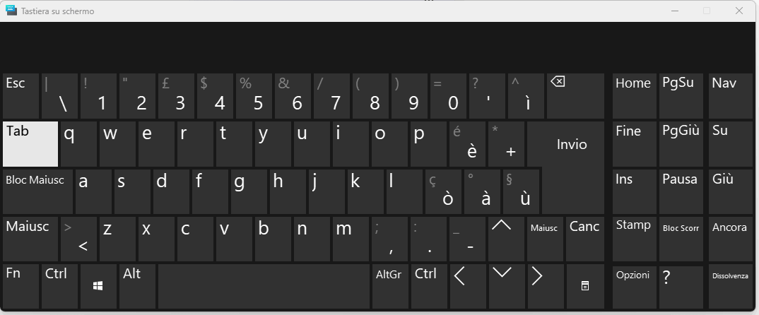 In alternativa, per far comparire la tastiera virtuale di Windows 11, è sufficiente premere la combinazione di tasti CTRL+Windows+O. Ancora, si può fare clic con il tasto destro del mouse sul pulsante Start, scegliere Esegui e scrivere osk. Tutto questo, ovviamente, quando si potesse usare la tastiera fisica.