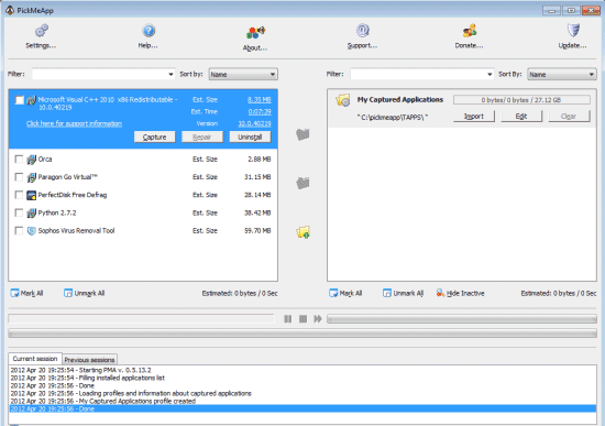 Nell’area di sinistra, il programma riporta l’elenco delle applicazioni installate sul personal computer che possono essere trasferite altrove. Nella zona di sinistra, invece, PickMeApp indica la lista di applicazioni che sono ripristinabili sul sistema in uso. Per impostazione predefinita, il software tiene traccia delle procedure di ripristino delle applicazioni selezionate all’interno di una serie di file con estensione .tap, conservati nella sottocartella TAPS.