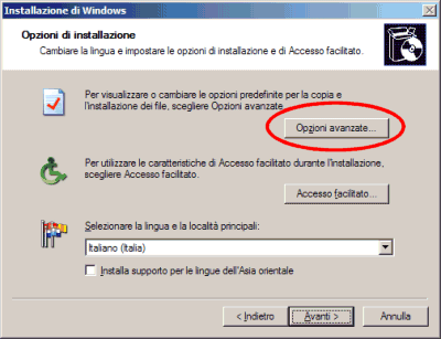 Le versioni più recenti di Windows (2000, XP, Server 2003) includono un sistema (boot loader) che permette di scegliere quale sistema operativo deve essere avviato all’accensione del personal computer. Prima di cimentarsi con l’installazione di più sistemi operativi sullo stesso pc, è bene preparare il disco fisso in modo tale che ad ogni sistema sia dedicata una partizione (utilizzo di FDISK, GDISK, Partition Magic). Nel caso di sistemi Windows, installate prima le versioni più vecchie (es. Windows 9x/ME) quindi quelle più recenti (es. 2000, XP). Supponiamo che abbiate installato Windows 98 nella prima partizione. Avviate da Windows 98, l’installazione del secondo sistema che desiderate utilizzare (per esempio, Windows XP): scegliete Nuova installazione, cliccate sul pulsante Opzioni avanzate infine spuntate la casella Selezione lettera e partizione dell’unità di installazione.