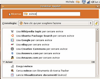 Lo strumento di desktop searching può essere impiegato anche per individuare ed avviare un’applicazione installata su Ubuntu che non dovesse essere facilmente individuata attraverso i menù proposti nella barra in alto.