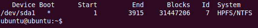 Le partizioni Windows che utilizzano il file system NTFS vengono indicate con la dizione HPFS/NTFS (ultima colonna a destra).