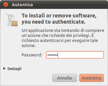 Cliccando sul pulsante Installa, si avvierà l’installazione del pacchetto previo inserimento della password.