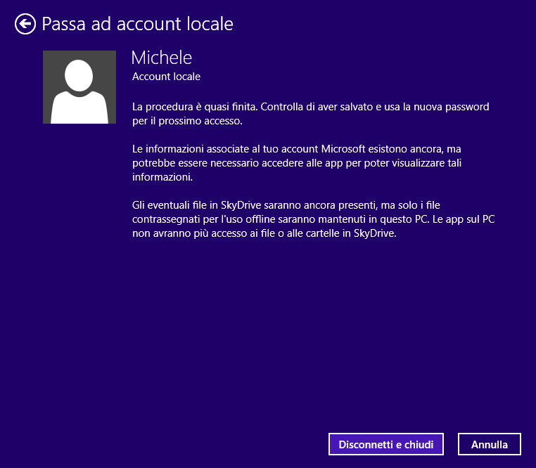 Va precisato, innanzi tutto, che l’uso di un account locale in luogo di un account Microsoft ha dei pro e dei contro. L’impiego di un account Microsoft permette di poter accedere istantaneamente a tutti i servizi online del colosso di Redmond: SkyDrive, Mail, Windows Store, Skype e così via.