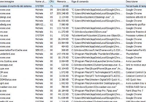 La schermata in figura è sostanzialmente simile in Windows 7 e Windows 8.1 ed è accessibile cliccando sulla scheda Processi dopo aver premuto CTRL+MAIUSC+ESC.